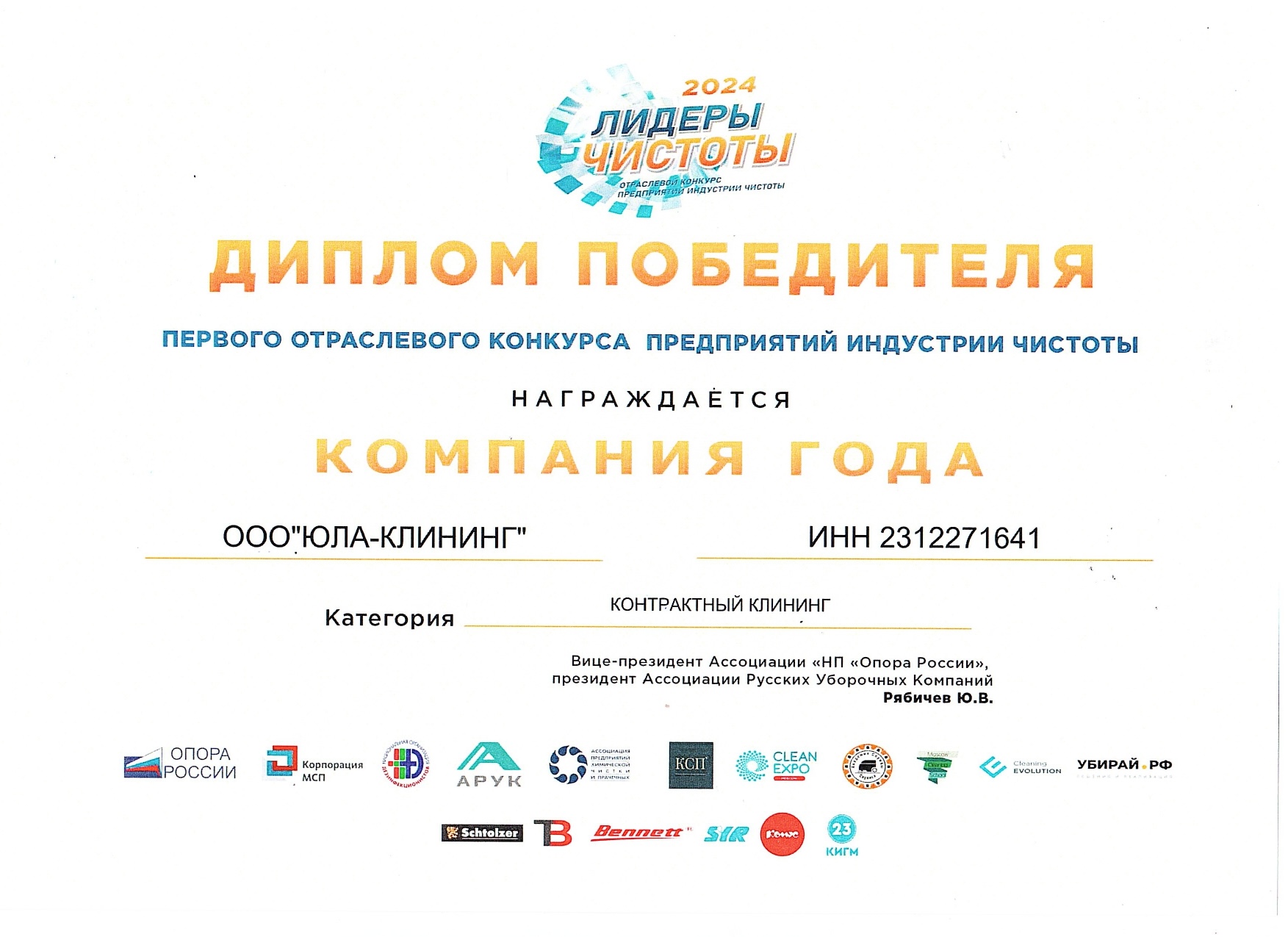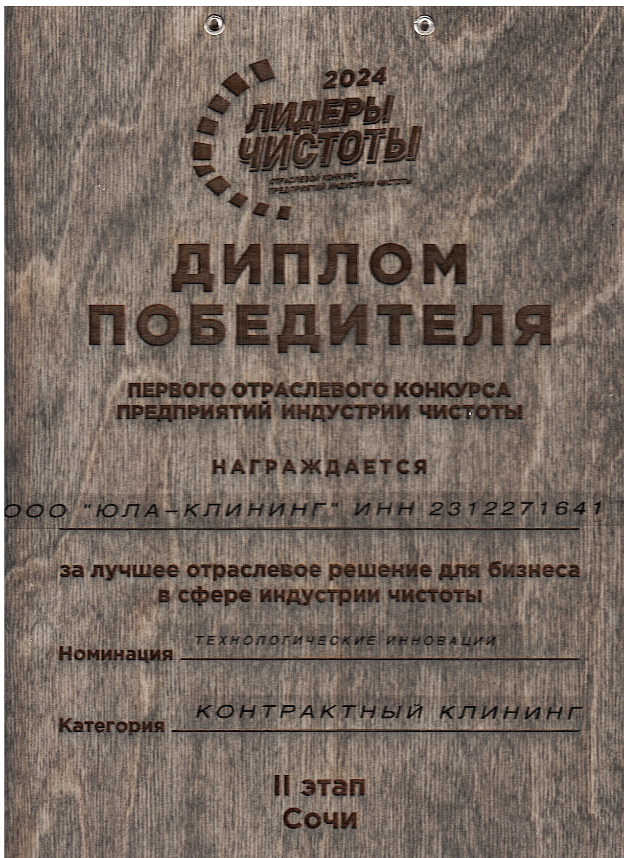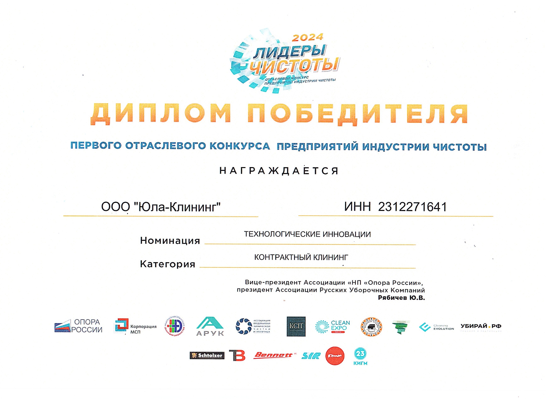 Победа в номинации «Технологические инновации» на конкурсе «Лидеры Чистоты» — это признание наших достижений и подтверждение высокого качества наших услуг, а победа среди всех номинаций и присуждение звания «КОМПАНИЯ ГОДА» стала вершиной признания нашего мастерства.