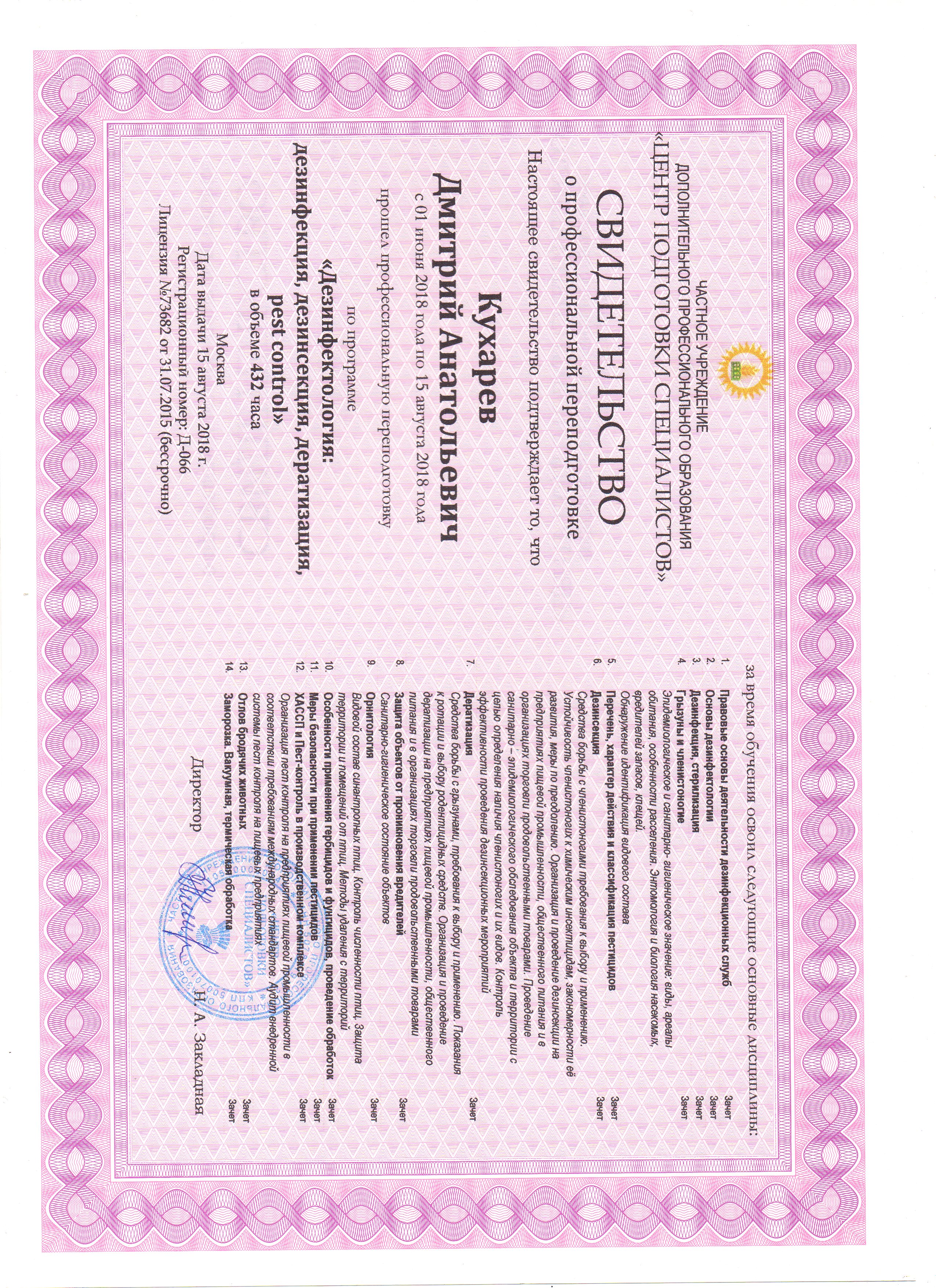 - Дезинфекция (специализированная)