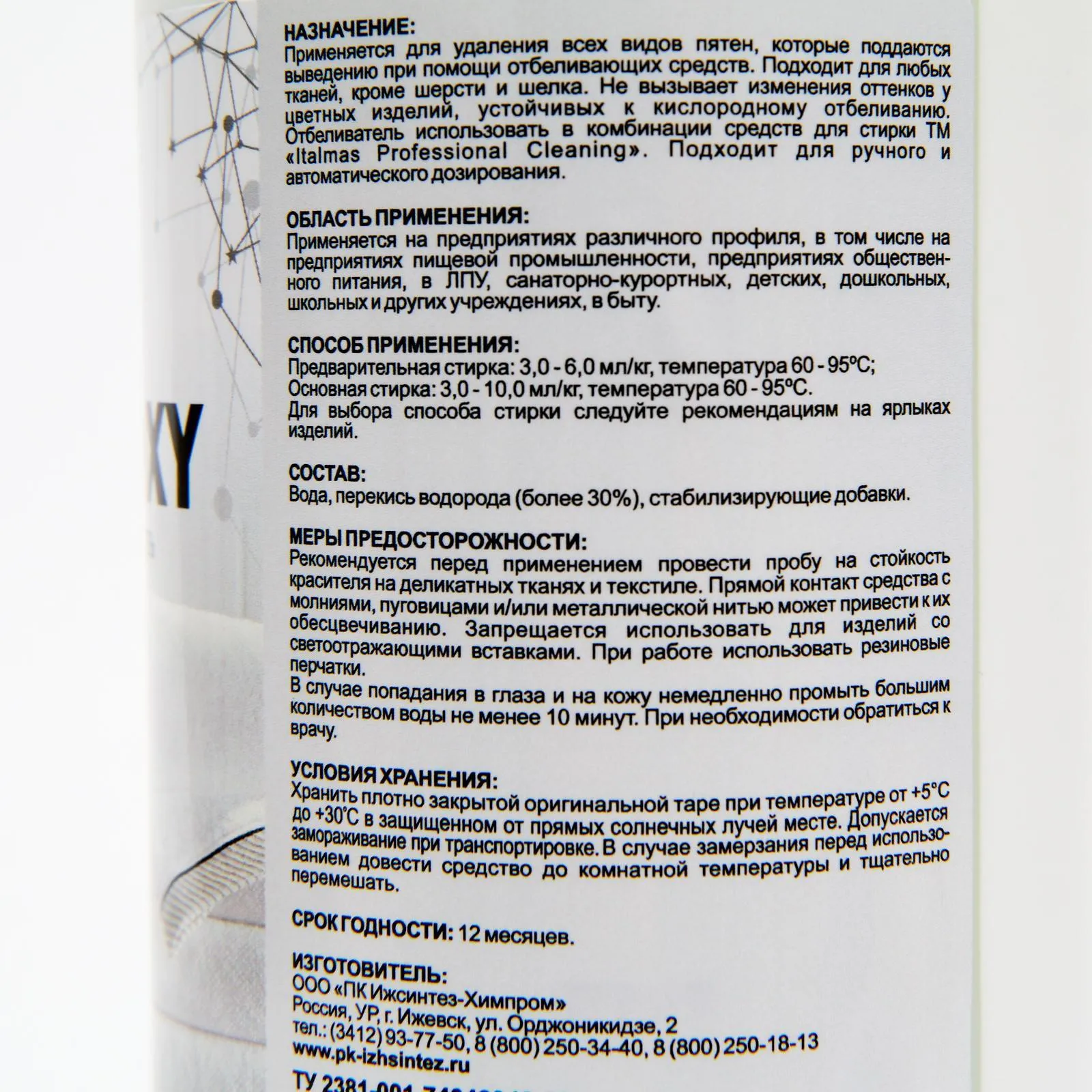 Отбеливатель использовать в комбинации средств для стирки ТМ «Italmas Professional Cleaning».
