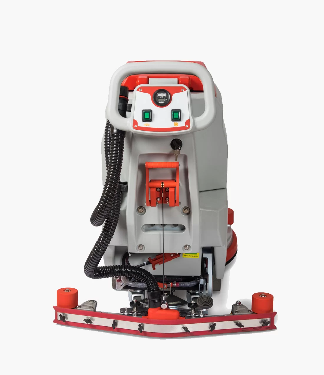 - Комплектация Панель управления, дисковая щетка с щетиной из полипропилена Ø510 мм, всасывающая балка, резиновый сквидж (водосборное лезвие), транспортировочные колеса, комплект аккумуляторных батарей (12 В/113 Ач при С5) — 2 шт., внешнее зарядное устройство (24 В/15А)