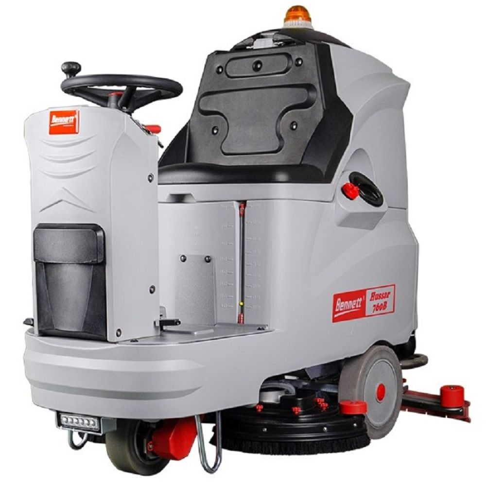 Bennett Hussar H760b — поломоечная машина с сиденьем для оператора оснащена тяговым приводом на переднее колесо, двумя дисковыми щетками с общей рабочей шириной 760 мм. Оптимальное сочетание размеров поломоечной машины и ёмкости АКБ позволяет максимально эффективно использовать её при работе.