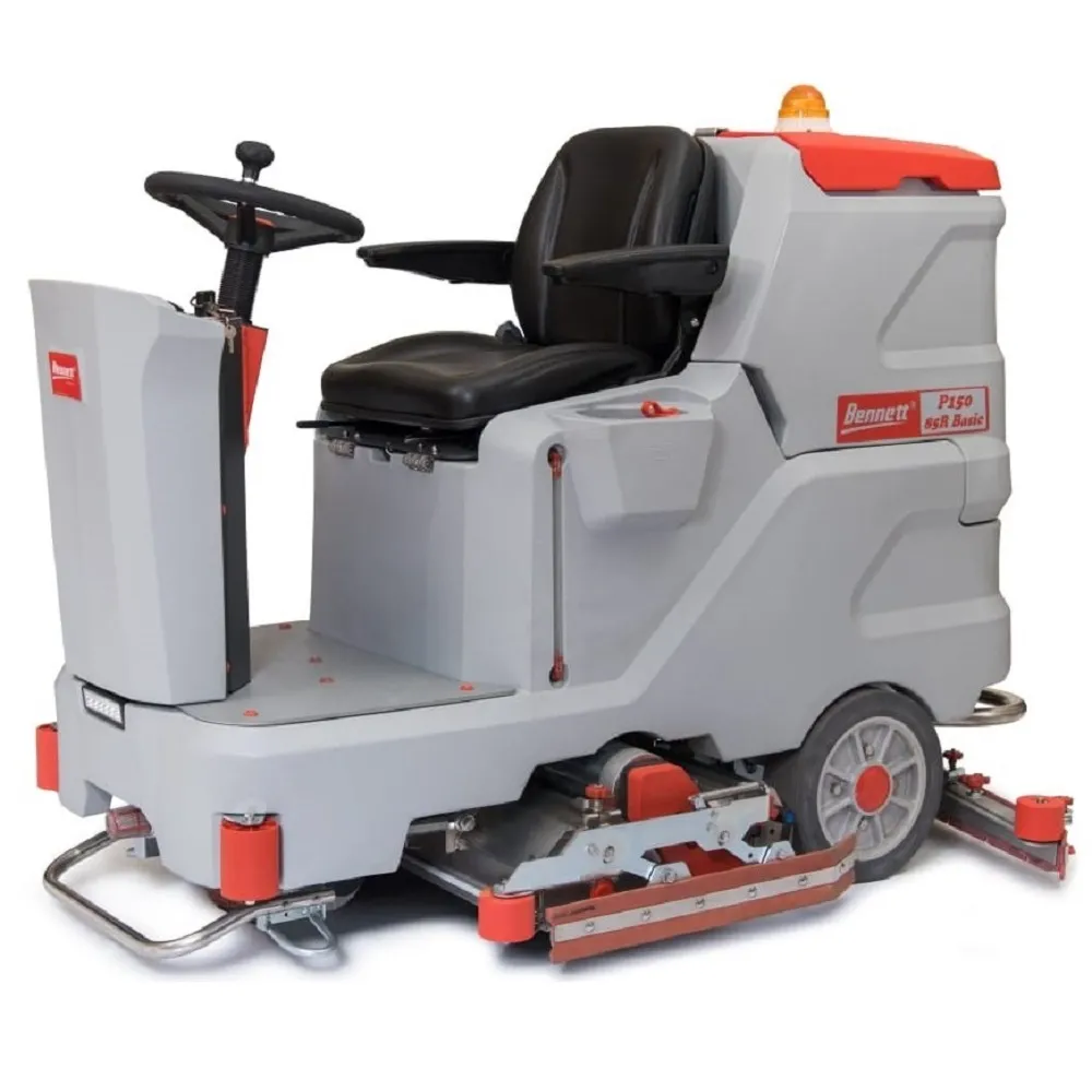 P150-85R модель с сиденьем для оператора, все машины данной конструкции оснащены приводом движения. Начало и скорость движения управляются оператором с помощью педали. Электропитание осуществляется от аккумуляторных батарей, установленных на борту моечного агрегата. Машина полностью автономна. Все машины райдерного типа питаются от АКБ.