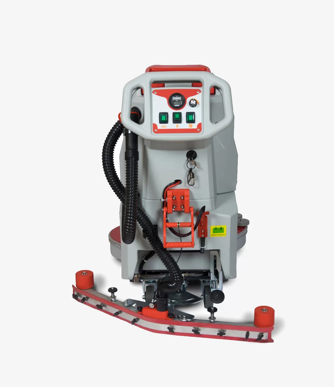 - Комплектация Дисковая щетка с щетиной из полипропилена 660 мм, всасывающая балка, резиновый сквидж (водосборное лезвие), транспортировочные колеса, комплект аккумуляторных GEL батарей 12 В/113 Ач, 2 шт., внешнее зарядное устройство (24 В/15 А).