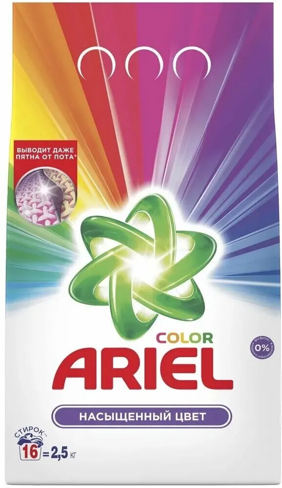 Благодаря технологии Аквапудра, порошок для стирки Ariel Color растворяется, едва коснувшись воды, и моментально активируется: глубоко проникает в структуру волокон и удаляет сложные пятна, не давая загрязнениям въедаться.