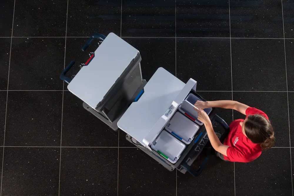 - Комплектация Платформа 2 шт. c встроенными мягкими бамперами, верхняя секция, опоры 10 шт., колеса 8 шт. (2 шт. со стопором), подставка для держателей насадок 2 шт., верхние транспортировочные ручки с 5 фиксаторами 2 шт.