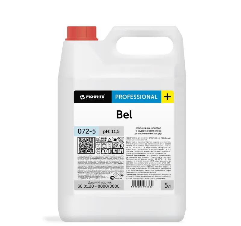 Фото товара: Средство для мытья отбеливания и дезинфекции посуды  5л Pro-Brite BEL (072-5)