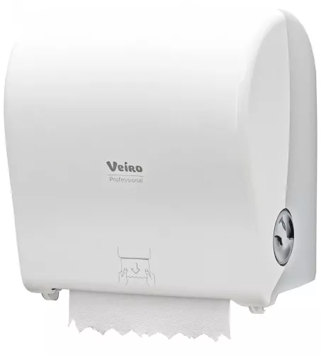 - Cамый компактный механический диспенсер для ролевых полотенец с любым количеством слоев.
