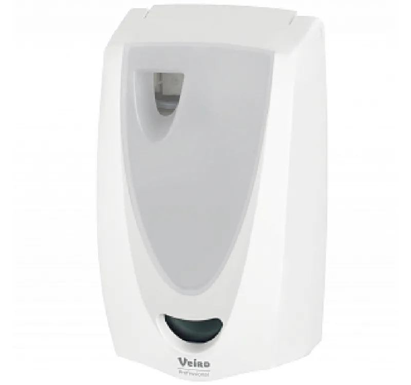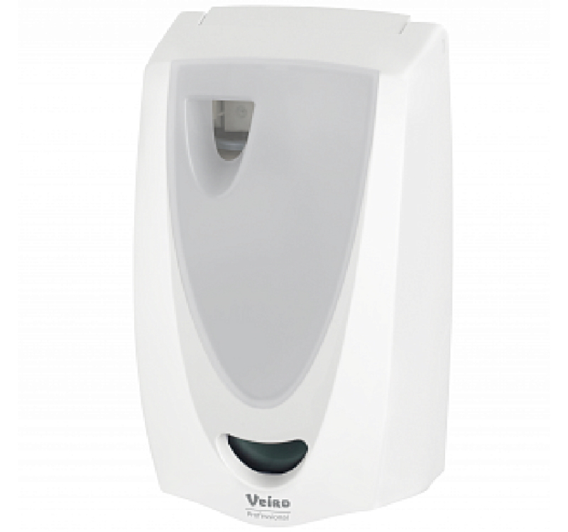 Полностью программируемый дозатор для освежителей воздуха Вейро Профешенел. Используются такие ароматы как, зеленый чай, яблоко, цитрусовый аромат и "blue tonic". Дозатор выполнен из ударопрочного ABS пластика. Специальный полупрозрачный материал дозатора помогает вовремя пополнять расходными материалами, что поможет всегда держать уборную на должном уровне гигиены.