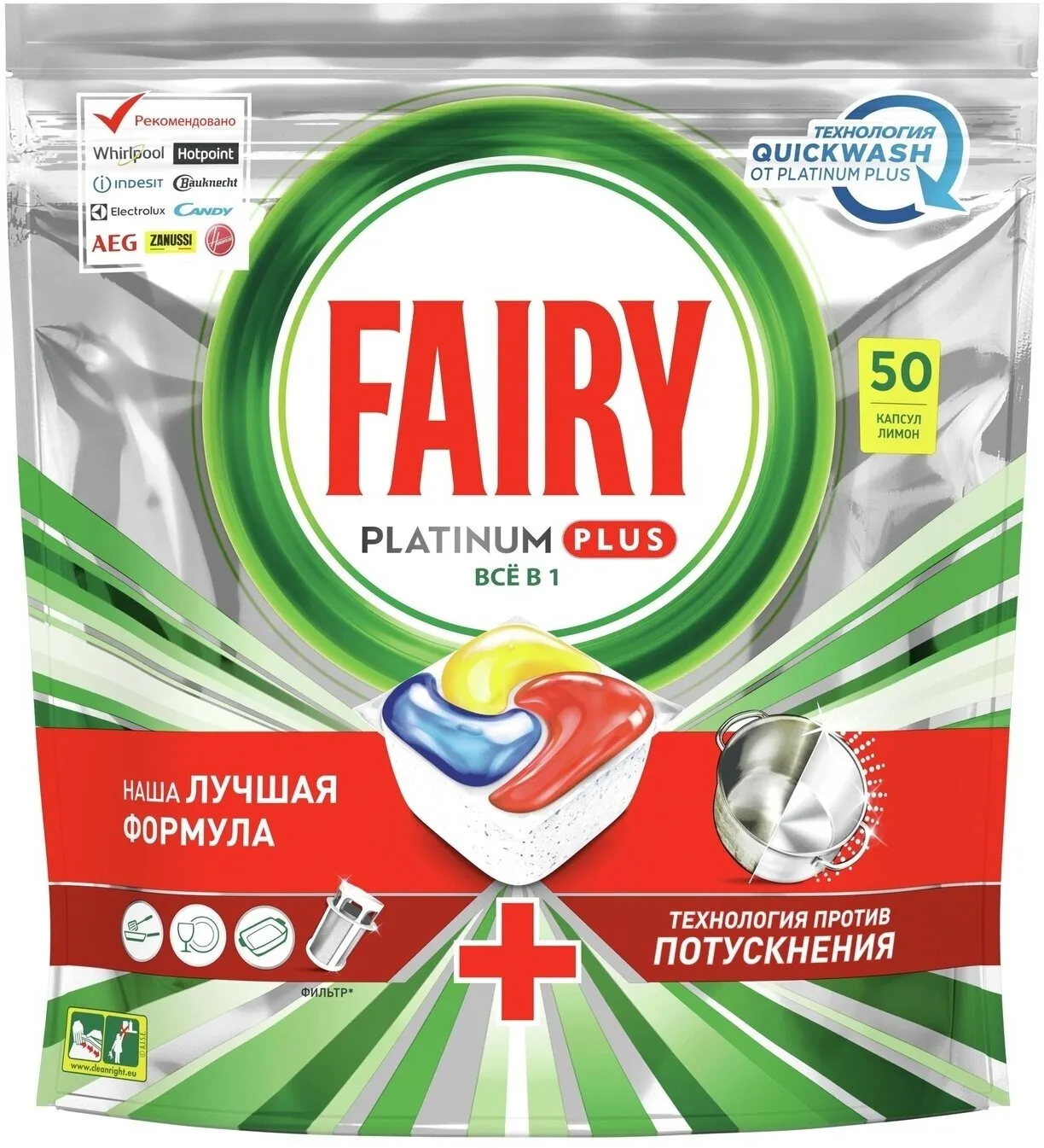 Капсулы для посудомоечной машины Fairy Platinum Plus с ароматом лимона — все, что нужно для мытья посуды и ухода за посудомоечной машиной в 1 капсуле.