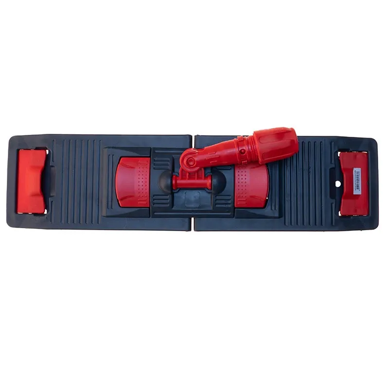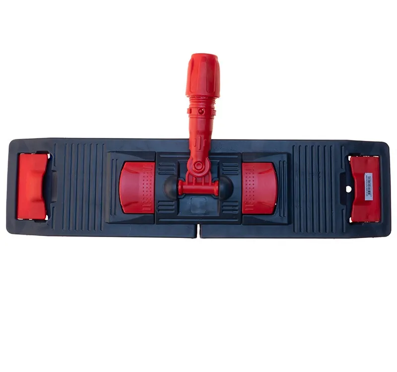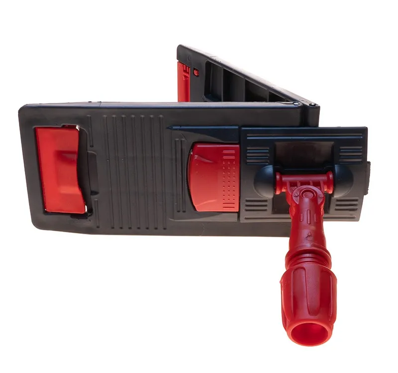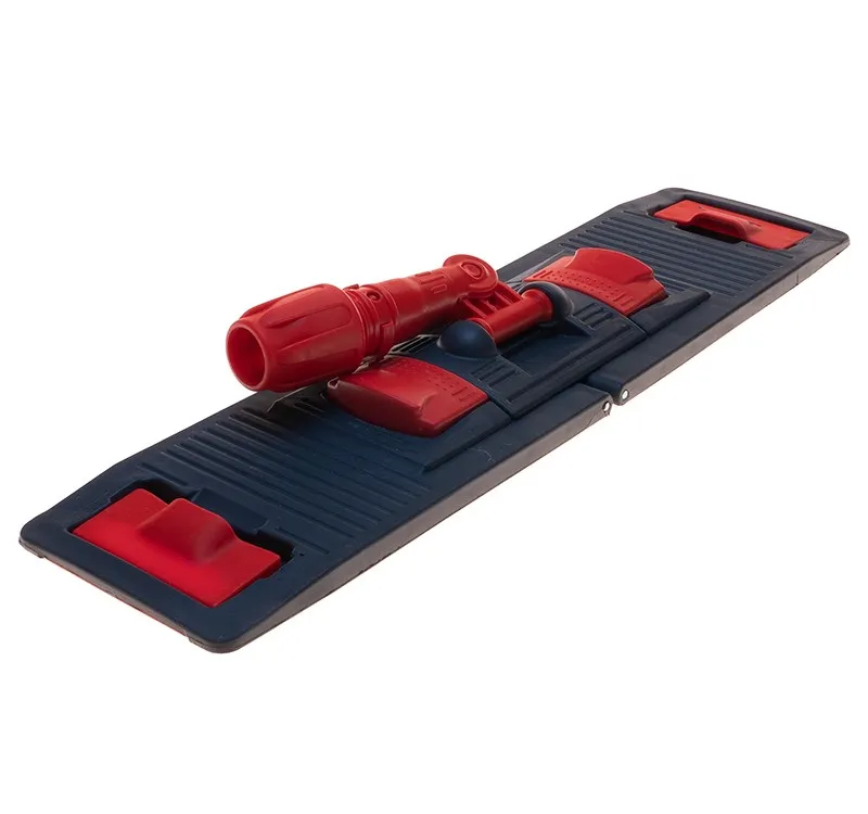 Универсальный держатель мопов NPK196 имеет размер рабочей поверхности 50 х 13 см. Флаундер для плоских мопов выполнен из высокопрочного, устойчивого к ударам и нагрузкам пластика (полипропилена), имеет две педали для удобного складывания, оснащен шарнирным соединением, обеспечивающим хороший контакт мопа с поверхностью и свободу движений.Конструкция держателя предусматривает крепление ручек винтовым или зажимным вариантом и позволяет крепить плоские насадки (мопы) несколькими способами: при помощи кармана и боковых лент (ухо).При креплении насадки (мопа) на универсальный флаундер через ухо, при складывании держателя, насадка провисает. Это позволяет отжимать её не снимая, а при использовании отжима, производить бесконтактный отжим, сохраняя руки в чистоте.Крепление насадки способом через карман не предусматривает бесконтактный отжим. При таком способе крепления плоского мопа необходимо нажать на одну-две педали держателя, вставить его в карманы насадки, опустив на поверхность пола, с небольшим нажимом защелкнуть педали на место, надежно закрепив насадку на флаундере.