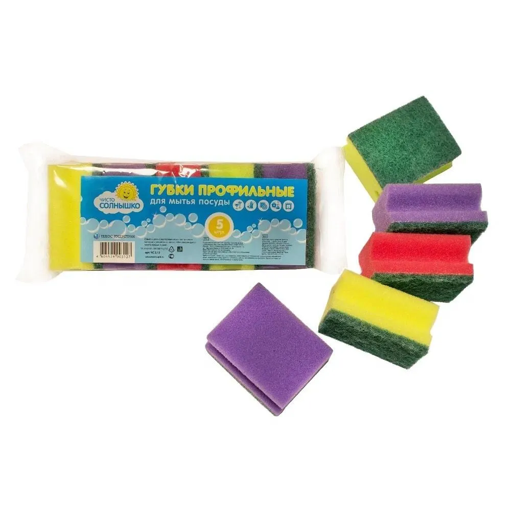 Губки для мытья посуды профильные из поролона и абразивной фибры подходят для повседневных хозяйственных нужд.