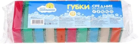 Кухонная двухслойная губка с абразивным слоем. В самой популярной экономичной упаковке 10 шт.
