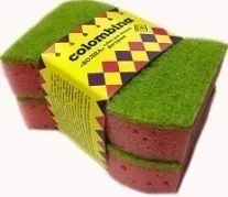 Фигурные губки Волна с крупнопористым поролоном розового цвета и оливковой абразивной фиброй.
