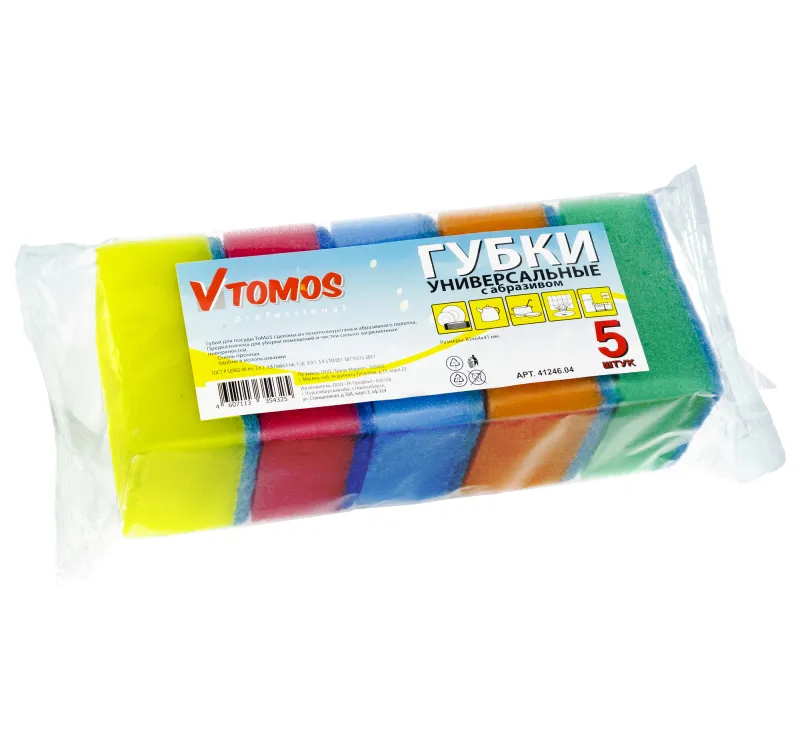 Губки для посуды ToMoS (Томос) сделаны из пенополиуретана, обработанного слоем абразивного полимерного полотна. Очень прочные и удобные в использовании губки, предназначена для уборки помещений и чистки сильно загрязненных поверхностей.