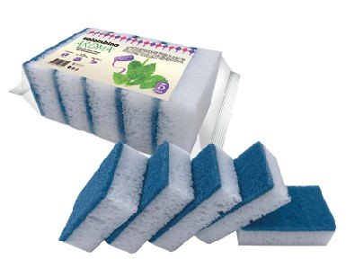 Губки из белого крупнопористого поролона с абразивной фиброй.