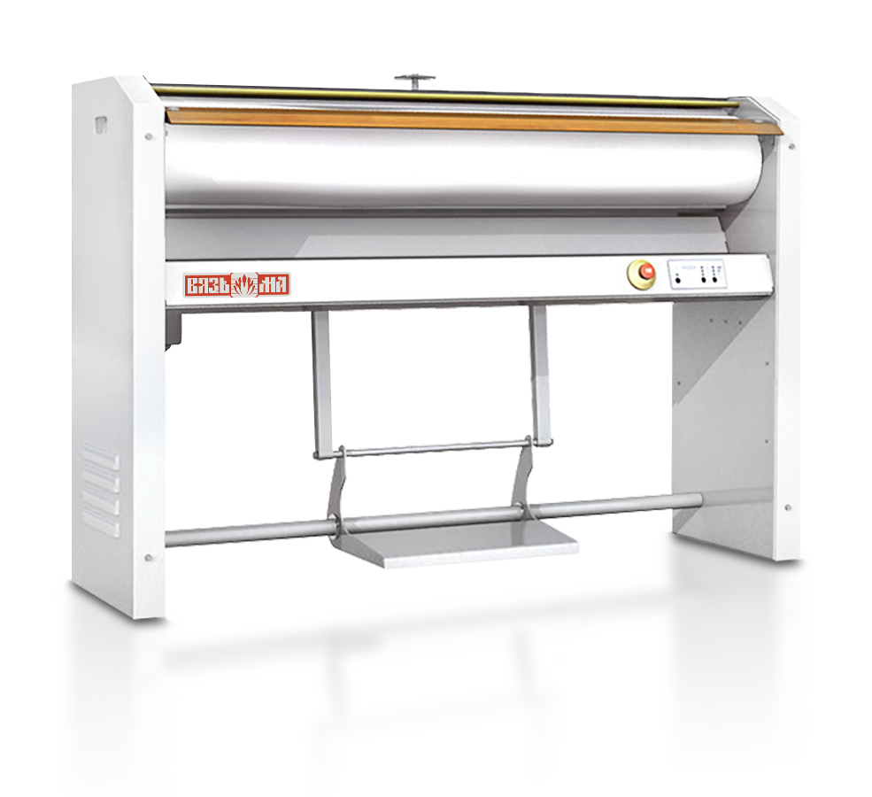 - Механический прижим утюга к валу гладильного катка ВГ-1218 осуществляется с помощью педали.
