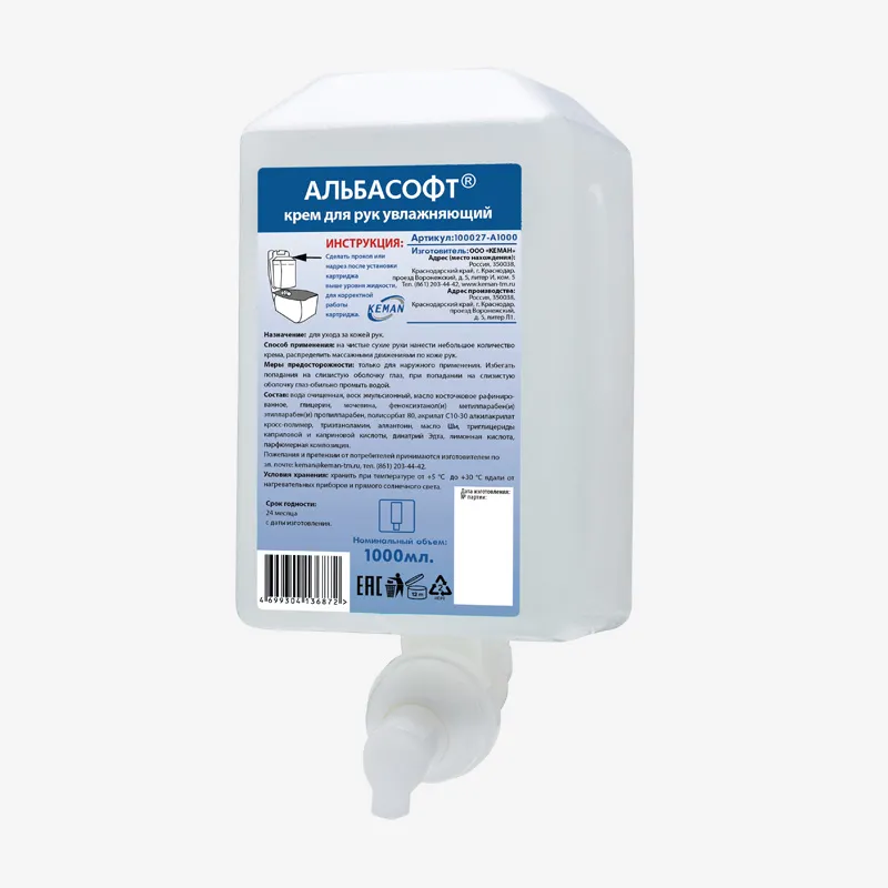 «Альбасофт» крем для рук увлажняющий ТМ КЕМАN, картридж объем 1 000 мл.