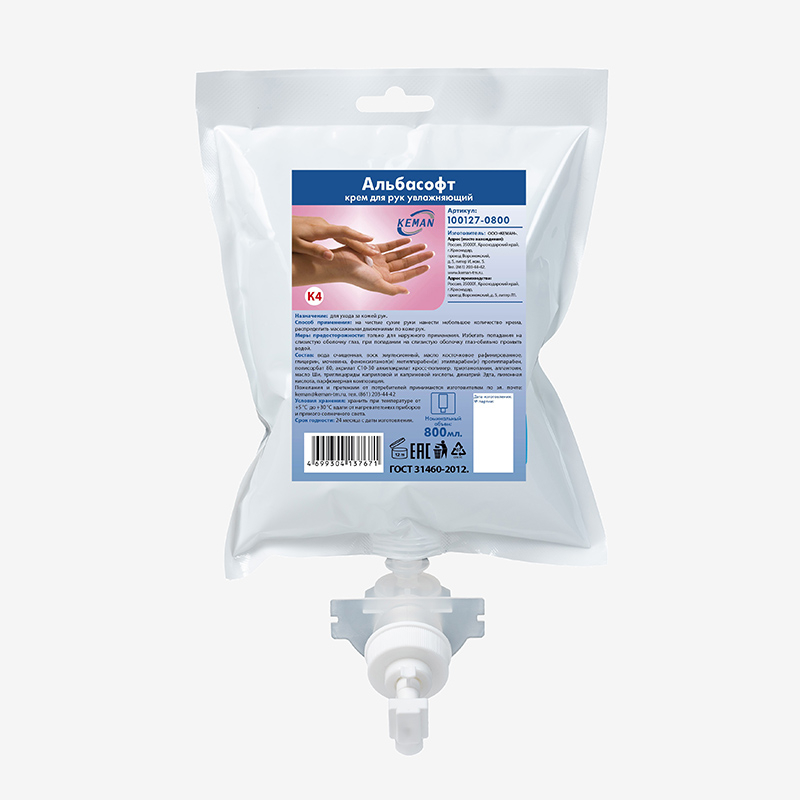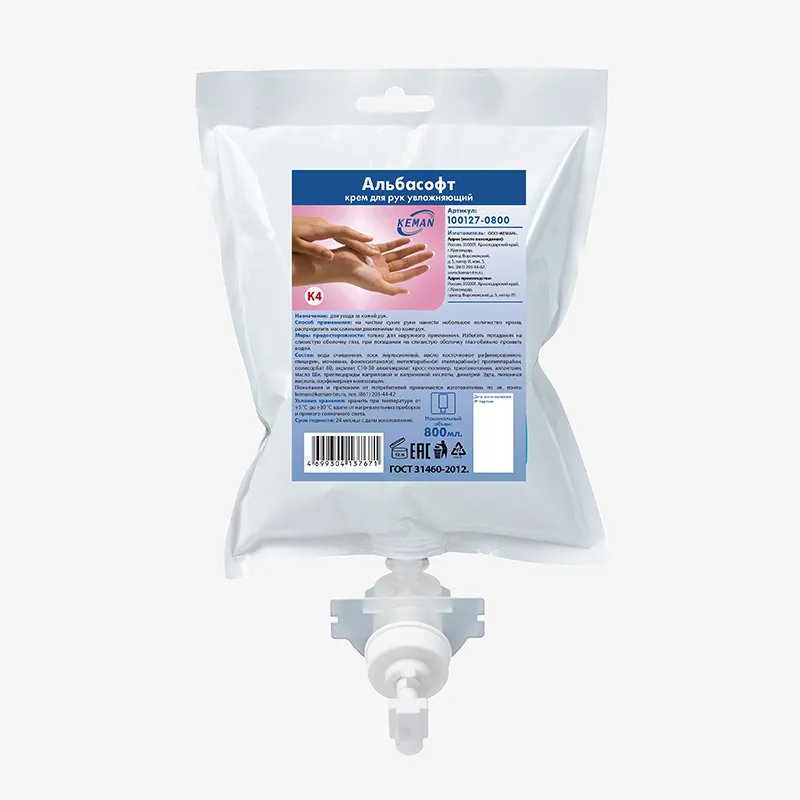 «АЛЬБАСОФТ» КРЕМ ДЛЯ РУК УВЛАЖНЯЮЩИЙ, картридж объем 800 мл для диспенсера К4 TM KEMAN.