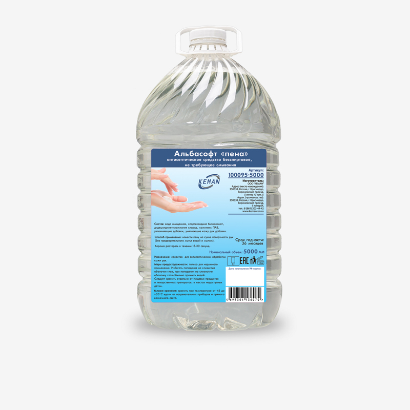 KEMAN «Альбасофт пена» антисептическое средство бесспиртовое, не требующее смывания, бутыль ПЭТ, 5 л