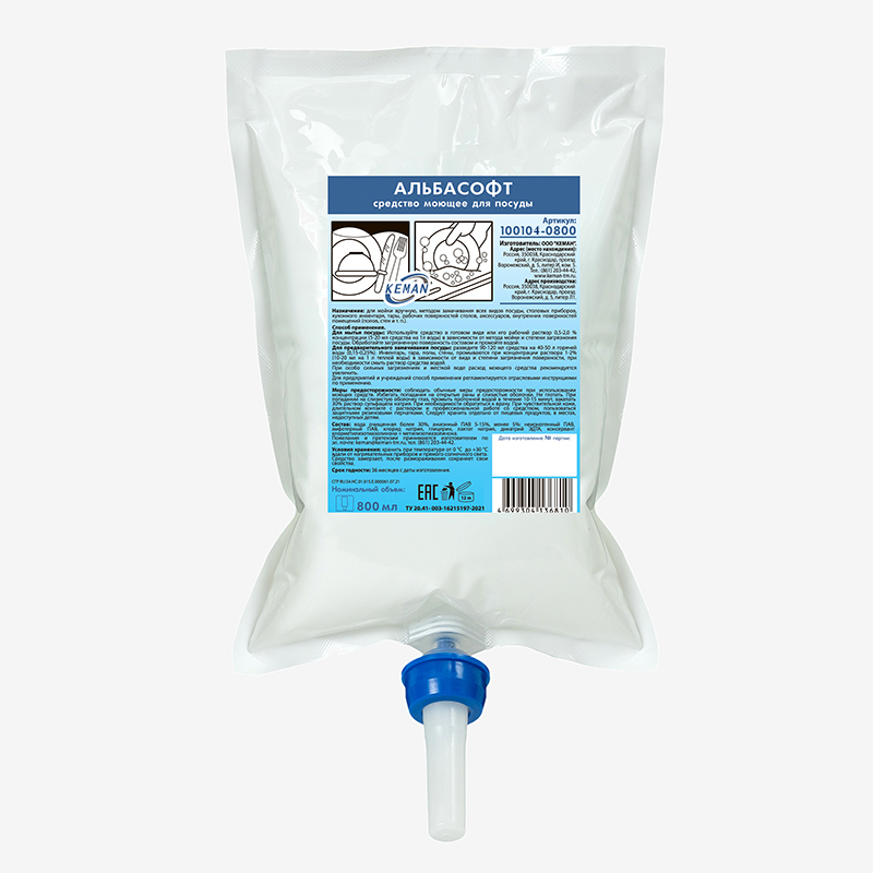 «АЛЬБАСОФТ» средство моющее для посуды ТМ KEMAN, картридж объем 800 мл для диспенсеров S1.