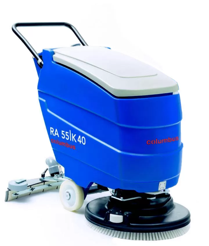 Особенность конструкции поломоечной машины Columbus RA 55 K 40 заключается в оригинальном креплении водосборной рейки к корпусу машины, что позволяет убирать разные виды покрытий при малых углах разворота. Водосборная рейка снимается легко - одним движением руки. Форма машины позволяет легко ее транспортировать по ступенькам даже одному человеку.