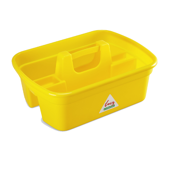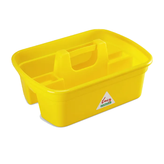 Многосекционный контейнер с ручкой для переноски аксессуаров уборочного инвентаря и чистящих средств.
