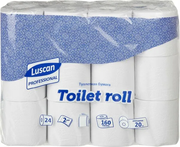 Бумага туалетная в рулонах Luscan Profеssional 2-слойная 12 рулонов по 200 метров.