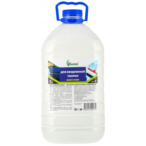 Низкопенное концентрированное средство для ежедневной уборки MagicHand, предназначено для всех типов влагостойких поверхностей.