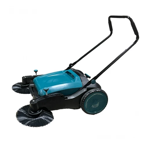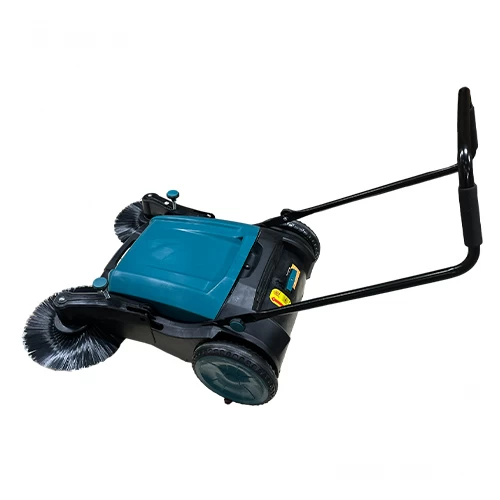 Подметальная машина с механическим приводом щеток от вращения колес для уборки мусора внутри помещений и снаружи.