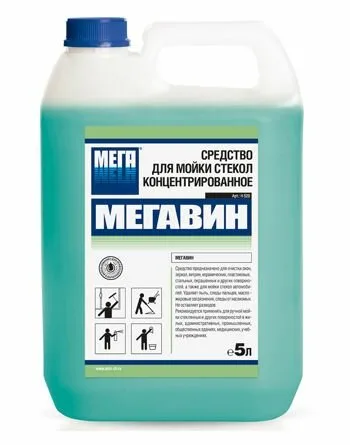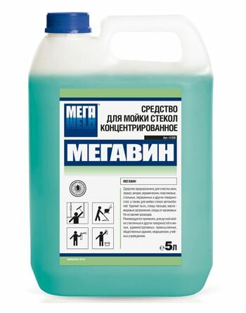 Средство нейтральное концентрированное для очистки окон, стекол автомобилей, зеркал, витрин, керамических, пластиковых, металлических, окрашенных и других водостойких поверхностей, в том числе стен и полов.