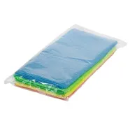 Салфетка, упакованная по 10 шт. в упаковку по 25 упаковок в гофрокоробе, плотность 220 г/м², размер салфетки 35×40 см, состав: полиэстер 80%, полиамид 20%, цвета: желтый, красный, синий, зеленый.