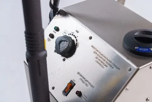 Станция обеспечивает моющий и дезодорирующий эффект и одновременно бактерицидное, фунгицидное, вирулицидное и спороцидное действие. Это единственный аппарат на отечественном рынке, 100% уничтожающий клопов и вшей в мягком инвентаре (матрацы, подушки, одеяла и др.)