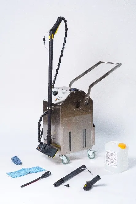 Нагретый до 100°С пар усиливает действие 6% перекиси водорода и позволяет ей проникнуть в самые труднодоступные места, такие как стыки кафельной плитки, области вдоль плинтусов, пористые и шероховатые материалы, складки ткани.