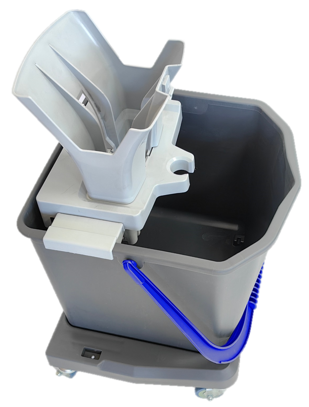 Фото товара: Набор Комплекс с УльтраСпид Мини: ведро 10 л с синим туннельным отжимом, ручка телескопическая, держатель для мопов 34 см, моп МикроЛайт УльтраСпид Мини, 1 пара перчаток Контракт размер М, 1 синяя салфетка ПВАмикро