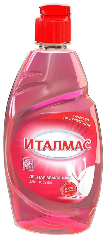 Средство для мытья посуды Италмас «Лесная земляника» обеспечивает эффективное удаление загрязнений с посуды.