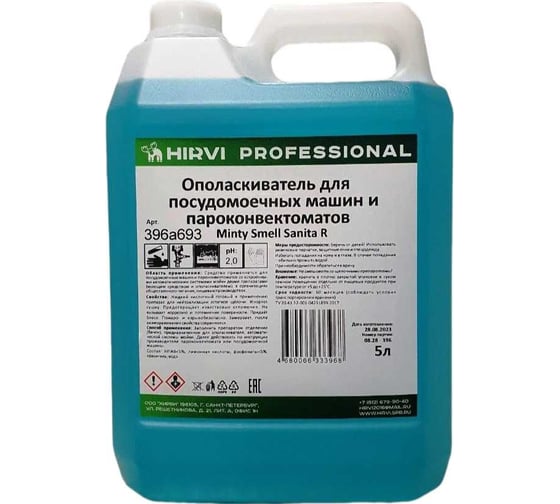 Minty Smell Sanita R — Ополаскиватель для посудомоечных машин и пароконвектоматов, применяется для автоматическими системами мойки двумя препаратами (моющим средством и ополаскивателем), в организациях общественного питания, пищевые производствах.