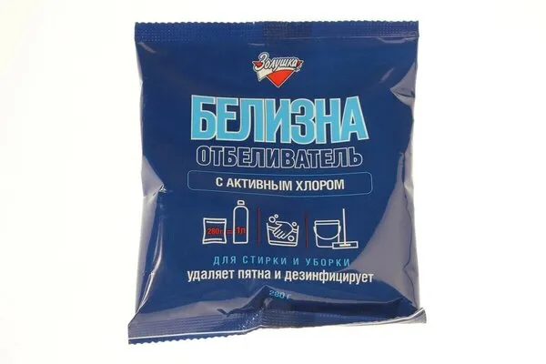 - Ручной метод Мытье полов, стен, раковин, унитазов, мусорных ведер: Растворить 50 г (4 столовых ложки) отбеливателя в 1 л теплой воды. Обработать поверхность раствором, выдержать 5 мин., промыть водой. Чистка стоков, уничтожение неприятных запахов: Размешать 90 г (7 столовых ложек) средства в 1 л теплой воды. Влить полученный раствор в сливное отверстие, выдержать 1-2 часа, промыть водой.