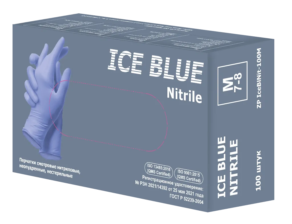 Перчатки медицинские смотровые нитриловые, неанатомической формы, нестерильные, неопудренные, текстурированная поверхность на пальцах, повышенная чувствительность.