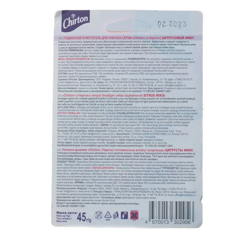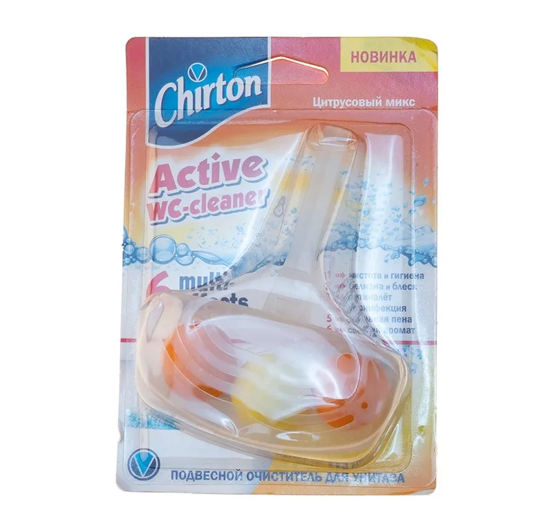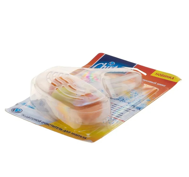 Подвесной блок для унитаза полностью обеспечивает гигиеническую чистоту туалета. Стойкий аромат. Устраняет неприятные запахи. Гигиеническая чистота. Очищает известковый налет и уменьшает его образование.