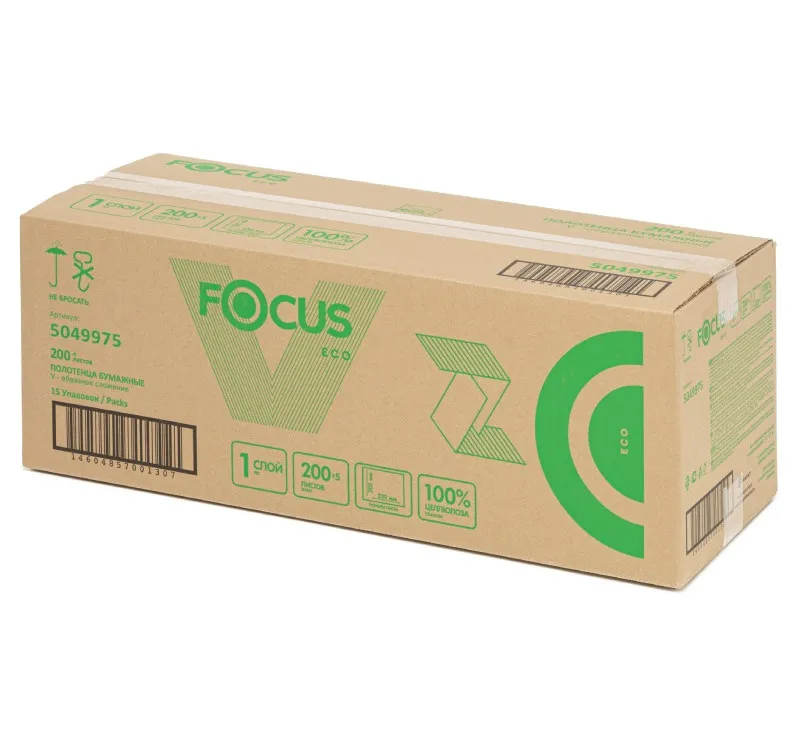 Полотенце бумажное V-слож. 1-сл. 200 л./упак. Focus (5049975) — Фокус.