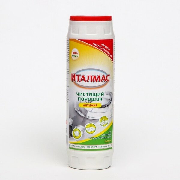Чистящий порошок Италмас «Лимон» санитарный предназначен для чистки сантехники, посуды, эмали, кафеля.