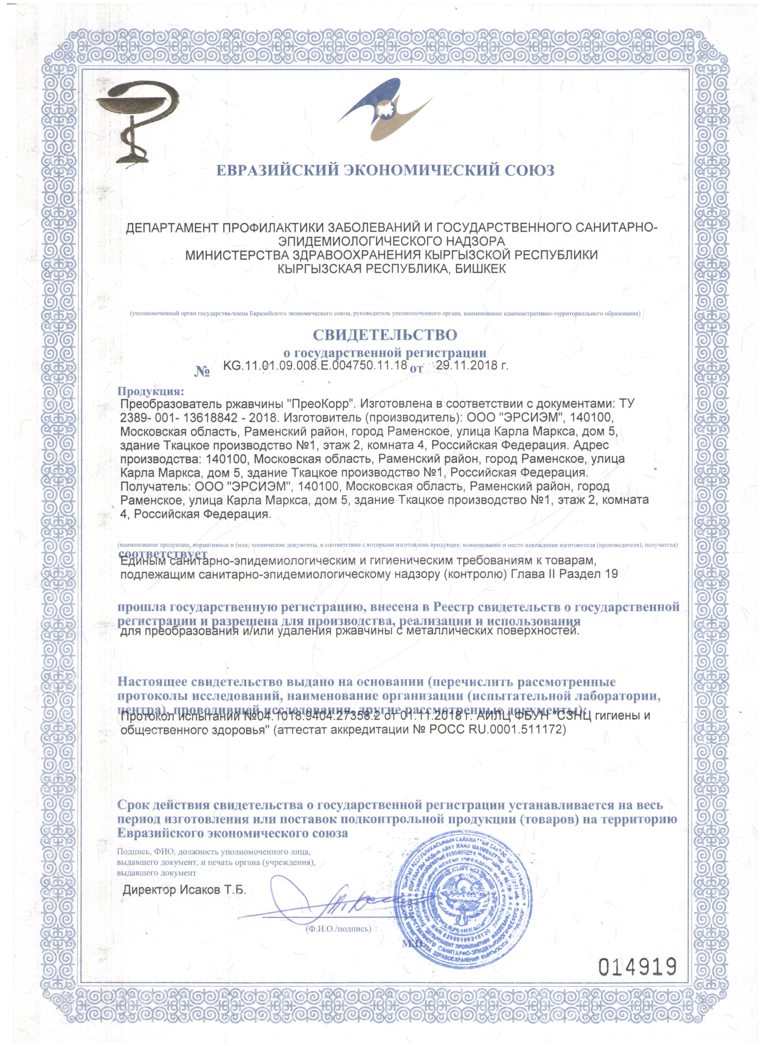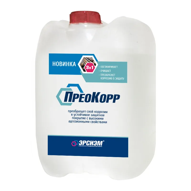 Преобразователь ржавчины «ПреоКорр» предназначен для предотвращения коррозионных потерь металлов и повышения их устойчивости к коррозии, для преобразования всех видов ржавчины металлических поверхностей (кроме цветных металлов) различных объектов в промышленности (пищевой, перерабатывающей, машиностроительной, топливно-энергетической, нефтеперерабатывающей и др.), в Вооруженных Силах РФ, на транспорте, в строительной индустрии, в ЖКХ, в сфере услуг (ремонт, реставрация и т. п.) и в быту.