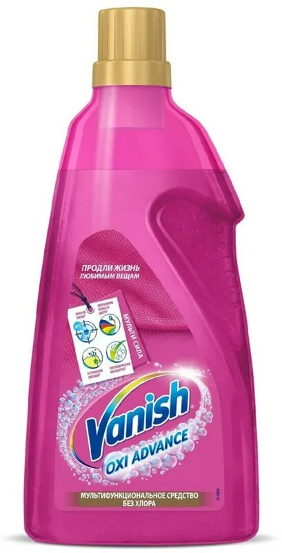 - Пятновыведение 1. Нанесите 2 мл геля и вотрите в пятно с помощью мерного колпачка. 2. Оставьте гель на пятне на 10 минут максимум. 3. После замачивания стирайте в стиральной машине как обычно. Используйте обычное моющее средство, добавив 50 мл геля Vanish.