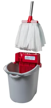 Фото товара: Набор Комплекс с УльтраСпид Мини: ведро 10 л с синим туннельным отжимом, ручка телескопическая, держатель для мопов 34 см, моп МикроЛайт УльтраСпид Мини, 1 пара перчаток Контракт размер М, 1 синяя салфетка ПВАмикро
