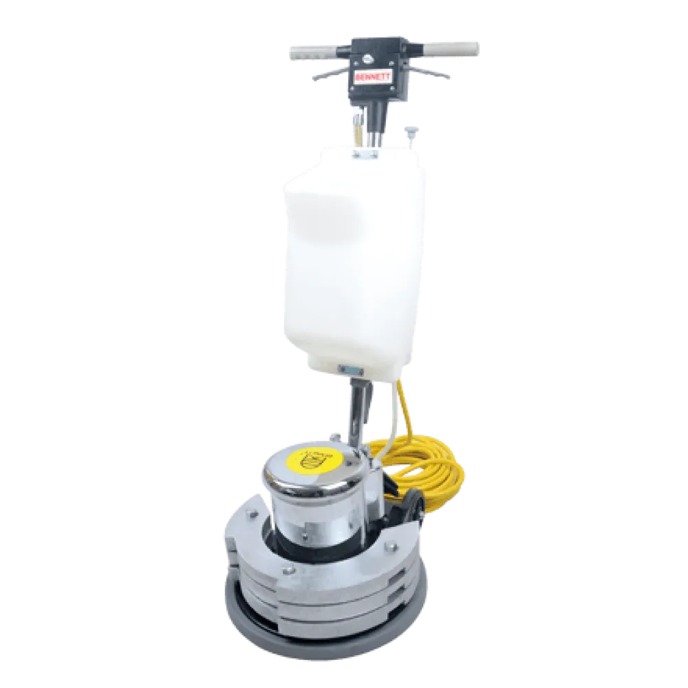 Однодисковая машина BENNETT PX-170 оснащена резиновым бампером, который в случае столкновения с мебелью или стенами убережет их от поломки. Опора изготовлена из алюминия, чтобы обеспечить максимальную прочность и долговечность. Подходит для полировки, уборки и нанесения средств по уходу.