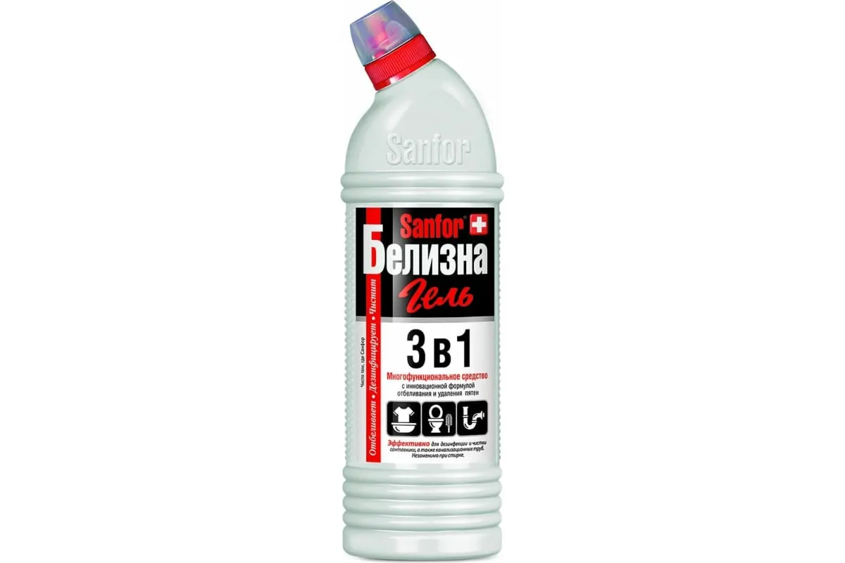 Многофункциональный гель отбеливает, дезинфицирует, чистит ванны, раковины, унитазы, канализационные стоки, пол, кафель, пластик, посуда (кроме металлической).