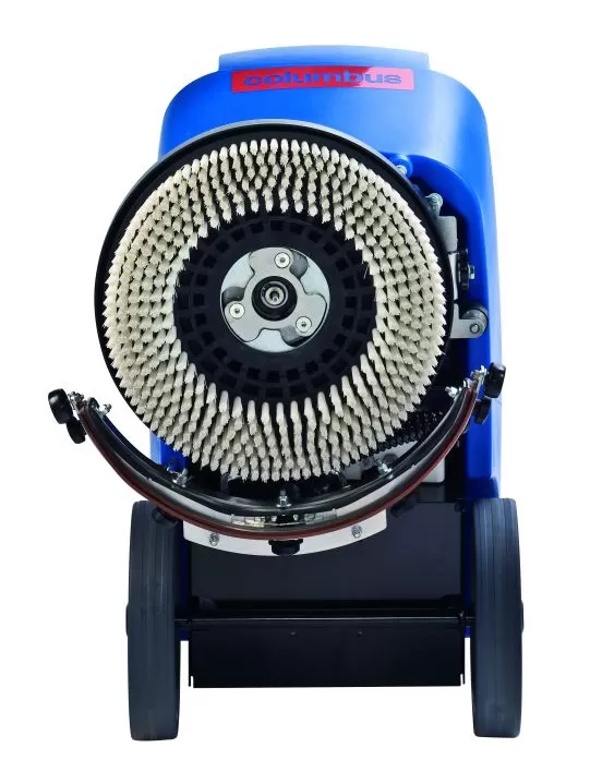 Несмотря на свои очень компактные размеры, Columbus RA 35K10, благодаря уникальной компоновке баков для воды, может похвастаться хорошей производительностью. Конструкция машины максимально облегчает труд оператора: большое воронкообразное отверстие для залива чистой воды, легкий слив грязной воды в раковину или отверстие в полу, плавная регулировка подачи воды на щетку, а также отключение подачи при остановке щетки.