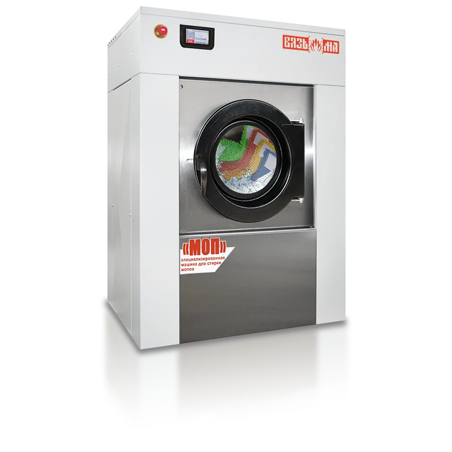 Стирка мопов, широко используемых при уборке напольных покрытий различных помещений, в стиральной машине является более удобной, чем классическое ручное «ополаскивание» в ведре с моющим раствором, т. к. эта технология обеспечивает лучшее удаление загрязнений и песка из ткани, а также более гигиенична. Для достижения наилучшего результата стирка должна осуществляться на специальном оборудовании. Профессиональные машины, в отличие от бытовых, надежно защищены от песка и ворса, а специальные встроенные программы и применение жидких моющих средств помогают сделать процесс стирки быстрым, эффективным и экономичным.