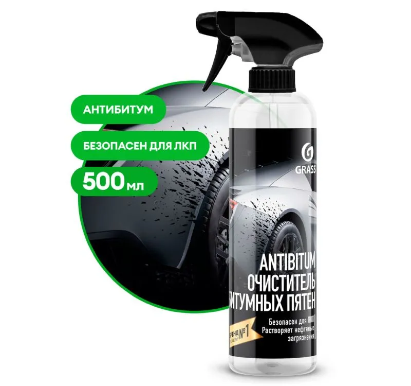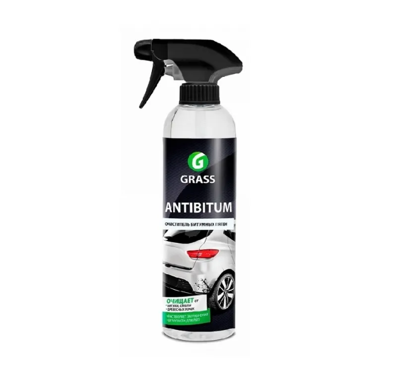 Средство Grass «Antibitum» для удаления нефтепродуктов, смол, битумных пятен, следов резины и др. дорожно-нефтяных загрязнений с различных поверхностей.Состав:органические растворители, смесь поверхностно-активных веществ, терпеновые масла, эмульгатор.Способ применения:1. Распылить состав на поверхность. 2. Подождать 1-10 мин. в зависимости от типа и степени загрязнения. 3. Потереть губкой или салфеткой, затем смыть водой. Состав не смешивается с водой, использовать в чистом виде.