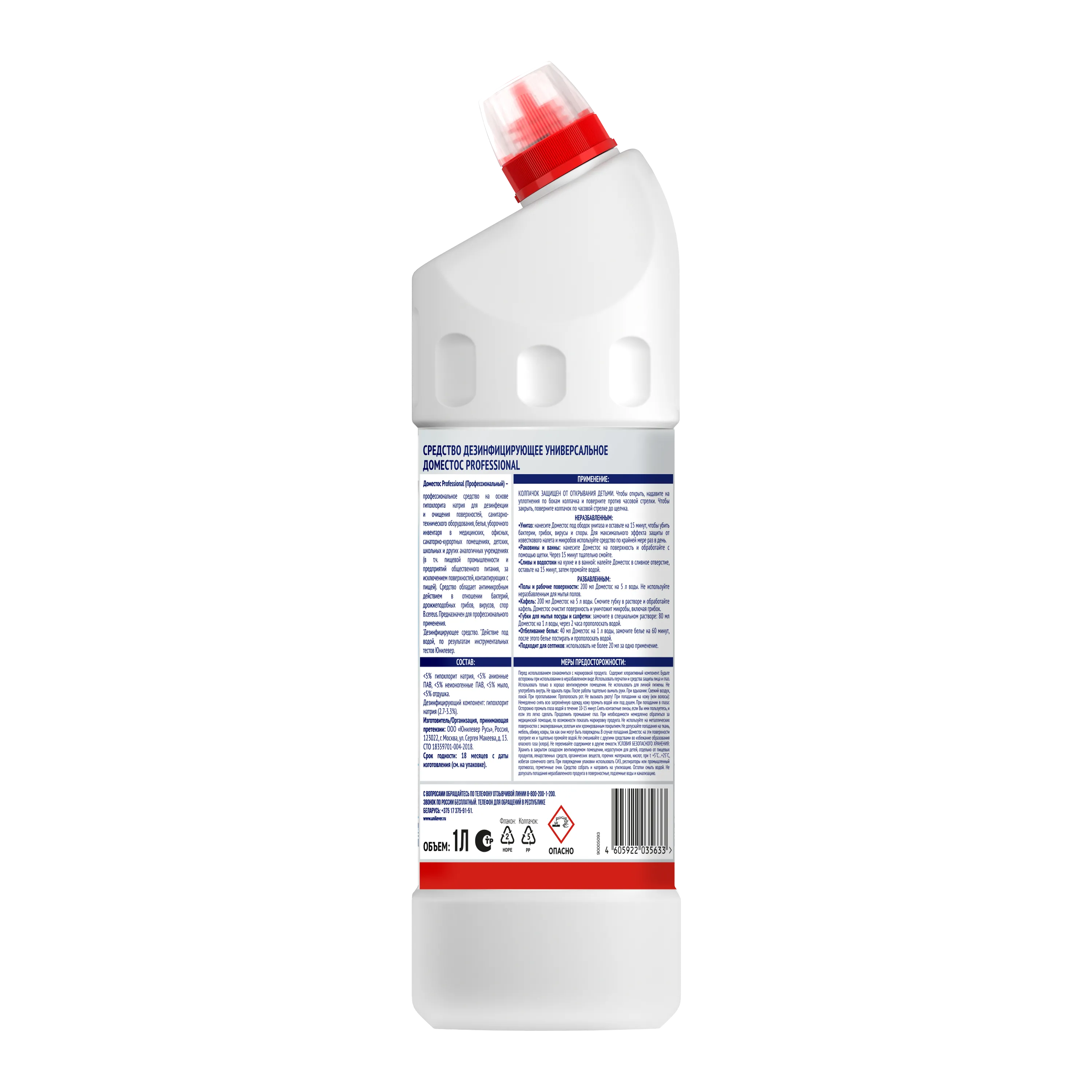 Средство дезинифцирующее Domestos Professional в формате геля предназначено для дезинфекции и очищения поверхностей в помещениях, санитарно-технического оборудования, белья, уборочного инвентаря в медицинских организациях, в организациях коммунально-бытового обслуживания (гостиницы, общежития, общественные туалеты и др.), в образовательных и санаторно-курортных учреждениях, местах культуры, отдыха и спорта, учреждениях соцобеспечения, пенитенциарных учреждениях, на предприятиях общественного питания и торговли, пищевой и перерабатывающей промышленности.